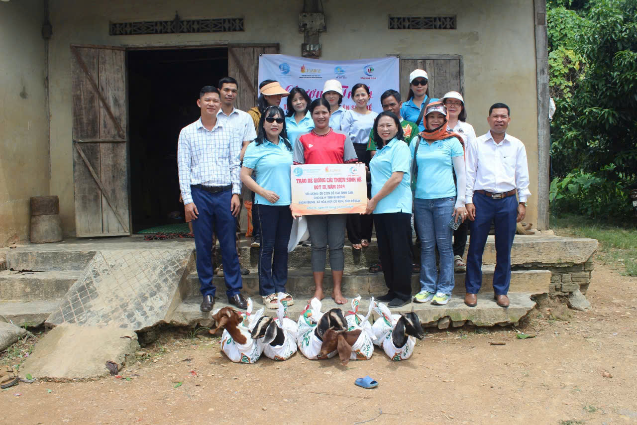 Trong đợt này, Hội Nữ doanh nhân tỉnh Đắk Lắk trao 27 dê cái sinh sản cho 7 hộ gia đình phụ nữ dân tộc thiểu số tại các huyện Krông Bông, Krông Buk, Cư Kuin và thành phố Buôn Ma Thuột.